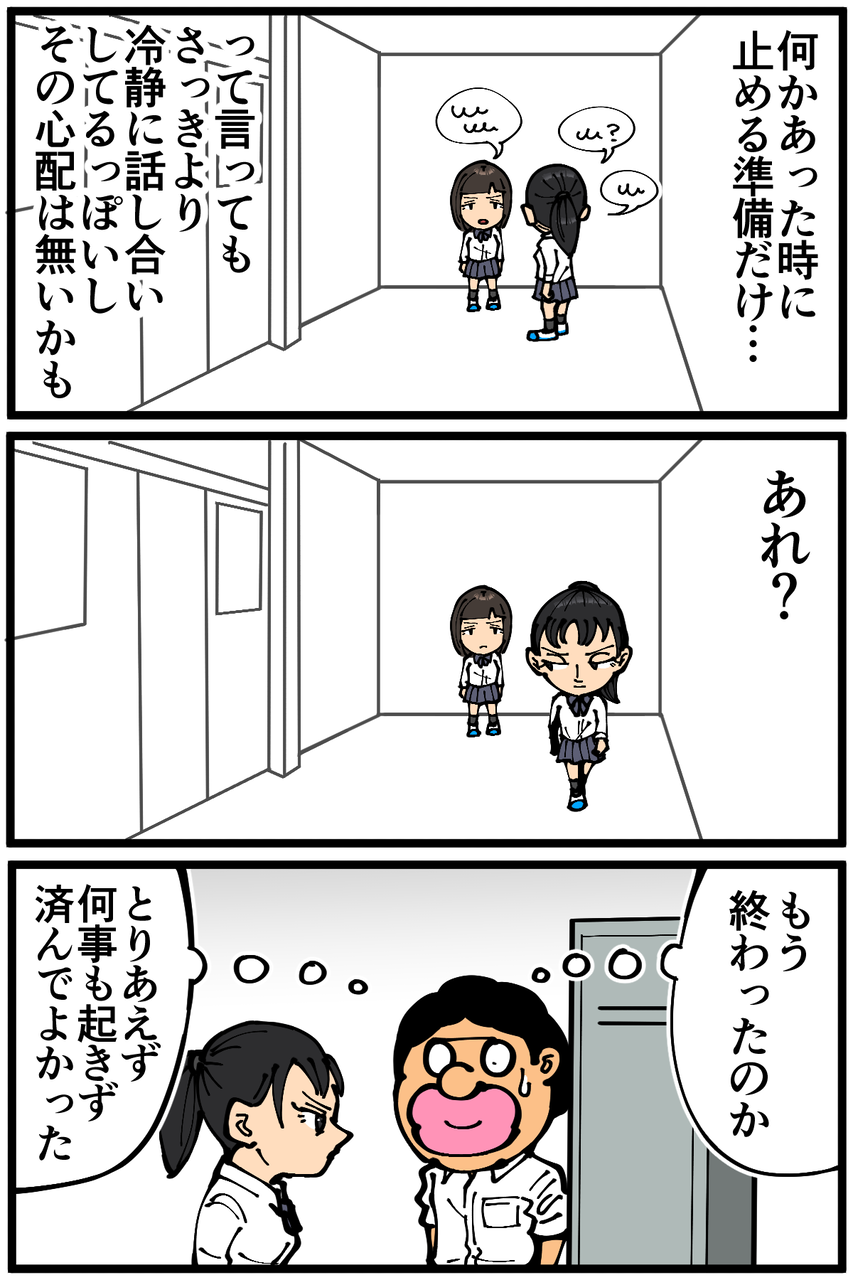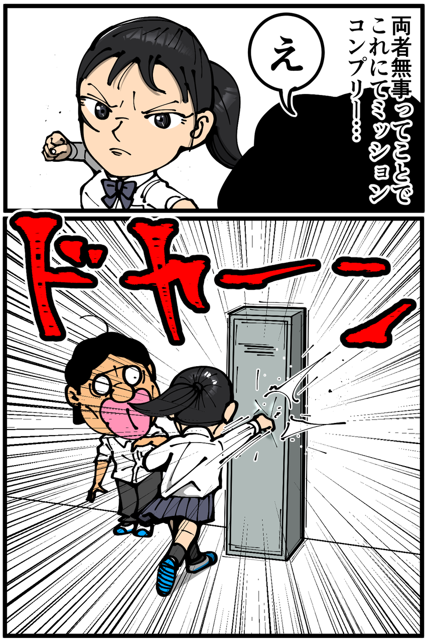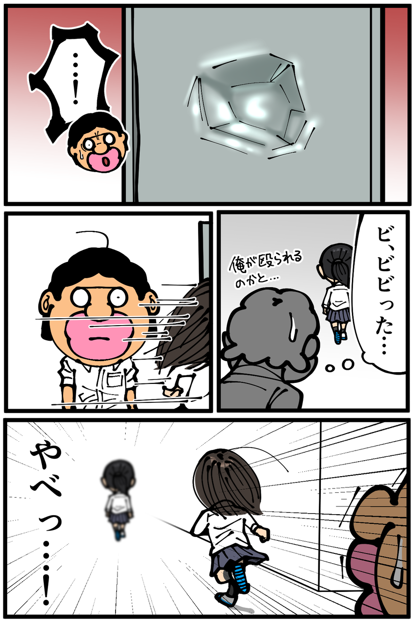 第1403話「高校時代のとあるトラブルエピソード⑦」 2023年05月09日 高校時代の思い出話です。前回↓ 次回に続きます。(本日この記事のみの更新です、すみません!)続き↓ 1話から読む↓本シリーズの全話まとめページはこちらから↓●Twitterやってます。●Instagramでブログの過去記事など更新してます↓●登録していただくと更新通知がLINEで届きます↓●こちらのページから過去記事一覧が見られます↓●LINEスタンプ販売中です。 「絵日記」カテゴリの最新記事 「高校時代のとあるトラブルエピソード」カテゴリの最新記事 < 前の記事次の記事 > コメント コメント一覧 (32) 1. 予想外にも程がある 2023年05月09日 23:04 続きが気になって寝れなくなりました 0 taikutsu_ken がしました 15. 退屈健 2023年05月10日 14:03 >>1 ありがとうございます、本日続き更新します! 0 taikutsu_ken がしました 2. 小手毬 2023年05月09日 23:05 凄いです!! ドラマチック☆ 当時、怖かったですね… 0 taikutsu_ken がしました 16. 退屈健 2023年05月10日 14:03 >>2 ありがとうございます! ビビりました!笑 0 taikutsu_ken がしました 3. 時間の翼アドバァァァアイス 2023年05月09日 23:19 先生がなぐられなくて良かったです 0 taikutsu_ken がしました 17. 退屈健 2023年05月10日 14:04 >>3 ありがとうございます!かなりビックリしました!笑 0 taikutsu_ken がしました 4. フォームが格闘技経験者のそれ 2023年05月09日 23:25 めっちゃしっかり腰の入った綺麗な右ストレートで思わず笑っちゃいました。続きが楽しみです。 0 taikutsu_ken がしました 18. 退屈健 2023年05月10日 14:04 >>4 キレのある良い右ストレートでした!笑 ありがとうございます! 0 taikutsu_ken がしました 5. ペコ太郎 2023年05月09日 23:28 「マッ?!!!」ですね。何で先生が必要だったんやろか。続きが気になるー。 0 taikutsu_ken がしました 19. 退屈健 2023年05月10日 14:23 >>5 叫びそうになりました!笑 ありがとうございます、本日更新します! 0 taikutsu_ken がしました 6. かっちゃん 2023年05月10日 00:24 先生がドツかれたかと思いました・・・ 0 taikutsu_ken がしました 20. 退屈健 2023年05月10日 14:23 >>6 僕も一瞬ビビりました!笑 0 taikutsu_ken がしました 7. 紅茶スキー 2023年05月10日 00:41 サンドバッグ代わりに呼ばれたのかと思ってしまいました 無事でよかったですね 0 taikutsu_ken がしました 21. 退屈健 2023年05月10日 14:24 >>7 「腹立つから殴らせろ」というジャイアン的な…!笑 0 taikutsu_ken がしました 8. ぐりる 2023年05月10日 01:49 マ゛ーー!! びっくり( °_° ) 0 taikutsu_ken がしました 22. 退屈健 2023年05月10日 14:24 >>8 ビックリでした…! 0 taikutsu_ken がしました 9. ゆきちお 2023年05月10日 04:41 バイオレンス〜😱 0 taikutsu_ken がしました 23. 退屈健 2023年05月10日 14:24 >>9 ビビりました…!😱 0 taikutsu_ken がしました 10. まっく 2023年05月10日 05:53 先生話聞かないようにするなんてマジいいヤツ。(かつイケメン。)私だったら1ミリも逃さず話聞くわ。 0 taikutsu_ken がしました 24. 退屈健 2023年05月10日 14:25 >>10 聞きたい気持ちも抱えておりました…!笑 0 taikutsu_ken がしました 11. ユーリ 2023年05月10日 06:50 女の子でも、ロッカー殴るんだー‼️ 拳から血が… けど、先生の呼ばれた意味(笑) 0 taikutsu_ken がしました 25. 退屈健 2023年05月10日 14:26 >>11 フルスイングでビビりました!笑 0 taikutsu_ken がしました 12. 2−10(ニート) ※安全なブログです 2023年05月10日 07:36 あ、ヤバい…… 0 taikutsu_ken がしました 26. 退屈健 2023年05月10日 14:26 >>12 ヤバい…!! 0 taikutsu_ken がしました 13. きい 2023年05月10日 08:14 パンチのフォームがものすごく綺麗 0 taikutsu_ken がしました 27. 退屈健 2023年05月10日 14:26 >>13 良い右ストレートでした!笑 0 taikutsu_ken がしました 14. ふーちゃ 2023年05月10日 09:13 前回からずっと脳内にスタン・ハンセン入場曲流れてるんですけど〜(;´Д`)(笑) 先生が殴られなくてよかった! 学生時代、壁殴ってる男子は見かけたけどロッカーへこませてる女子は見たことないな…… うーん、激しい……(*﹏*;) 0 taikutsu_ken がしました 28. 退屈健 2023年05月10日 14:26 >>14 ロッカーへのフルスイング、当時めちゃくちゃビビりました!笑 0 taikutsu_ken がしました 29. しゅうじょう 2023年05月10日 16:04 バカ力怖っ………… 0 taikutsu_ken がしました 30. 退屈健 2023年05月10日 16:43 >>29 凄い威力でした…!笑 0 taikutsu_ken がしました 31. 田中 2023年05月11日 05:51 応援してます 0 taikutsu_ken がしました 32. 退屈健 2023年05月20日 15:32 >>31 ありがとうございます! 0 taikutsu_ken がしました コメントフォーム 名前 コメント 記事の評価 リセット リセット 顔 星 情報を記憶 コメントを投稿する