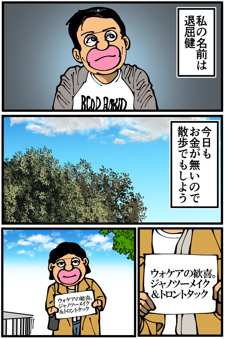 「金が無い」というワードからヒッチハイク的な何かを連想したのでしょうか。散歩でヒッチハイクを利用するのは斬新ですね。