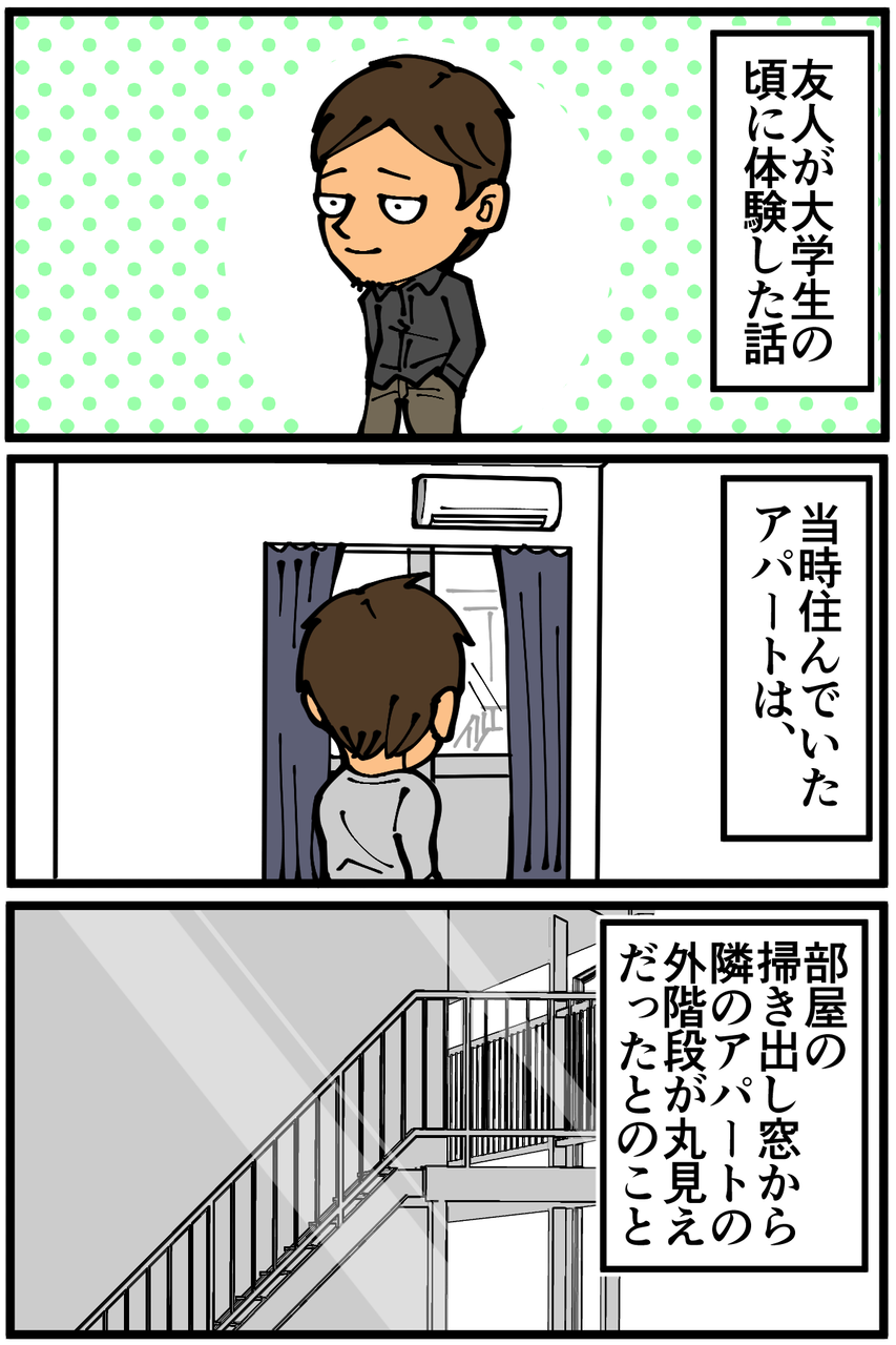 「ホラー物を描きたいけど肝心の私自身にそういった体験が全く無くて描けない」という状況を察知した友人が大学時代の体験談を提供してくれたので、日常絵日記とは別で数話に分けて描いてみたいと思います。