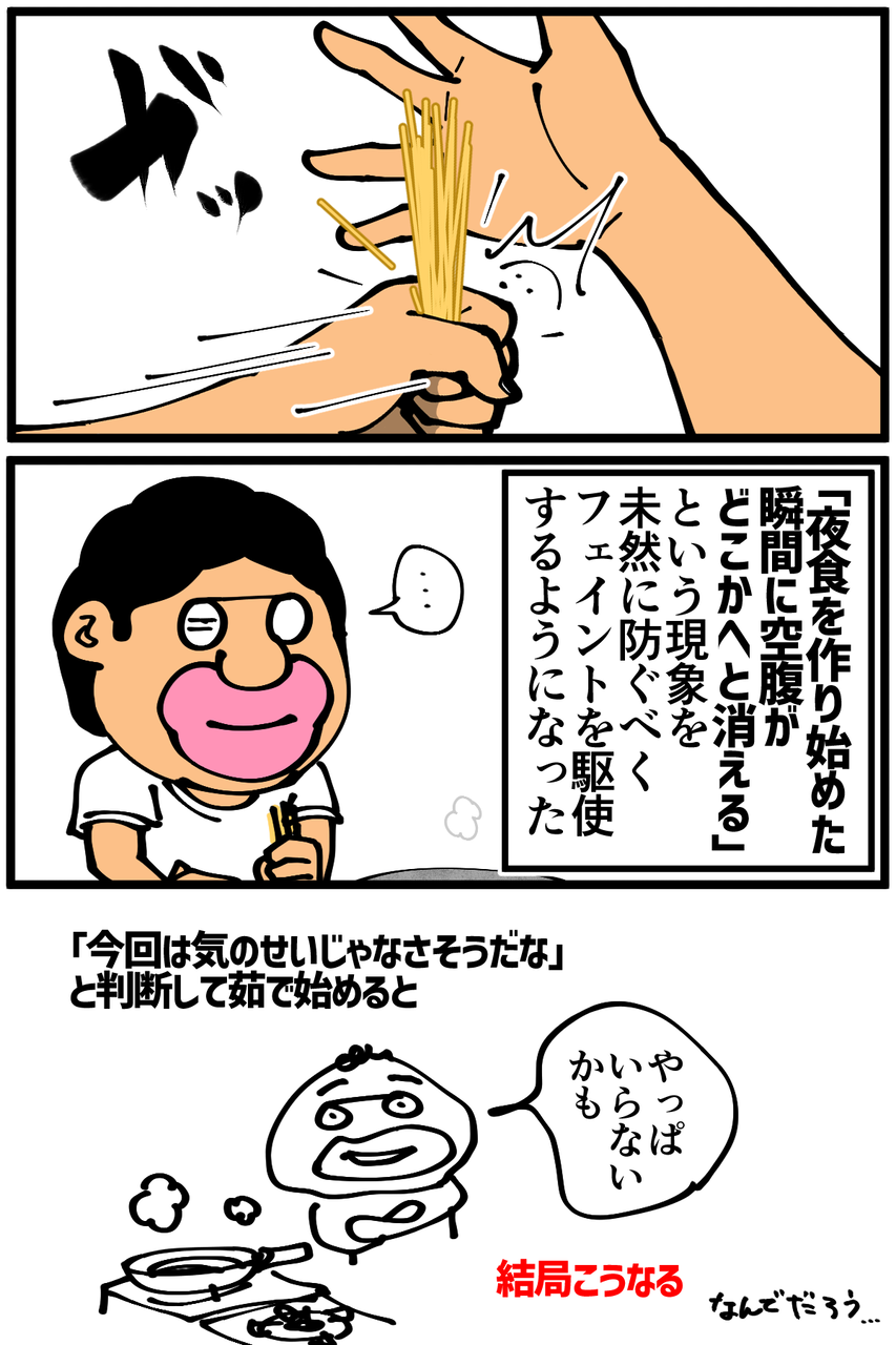 出来る限りリアルな演技で夜食を作るフリをして脳を騙せないか試してるんですが上手くいきません。俺一人で何やってるんだろう