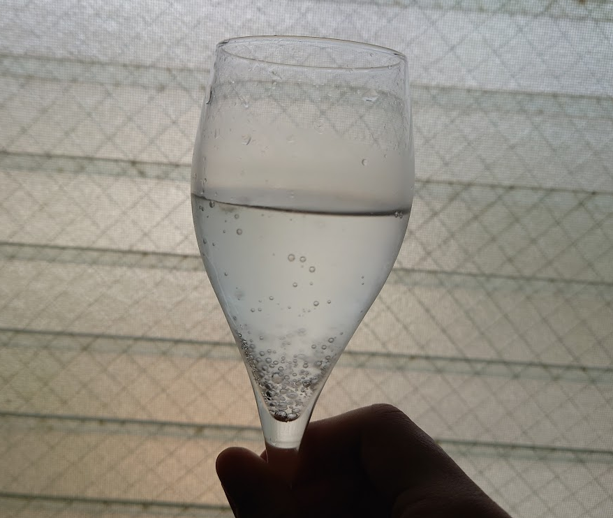 底の傷は肉眼では確認できないレベルで入っているとのことだったので炭酸水を入れて確認してみました。泡が多く発生しているような気もするけどイメージした感じとはちょっと違う。
