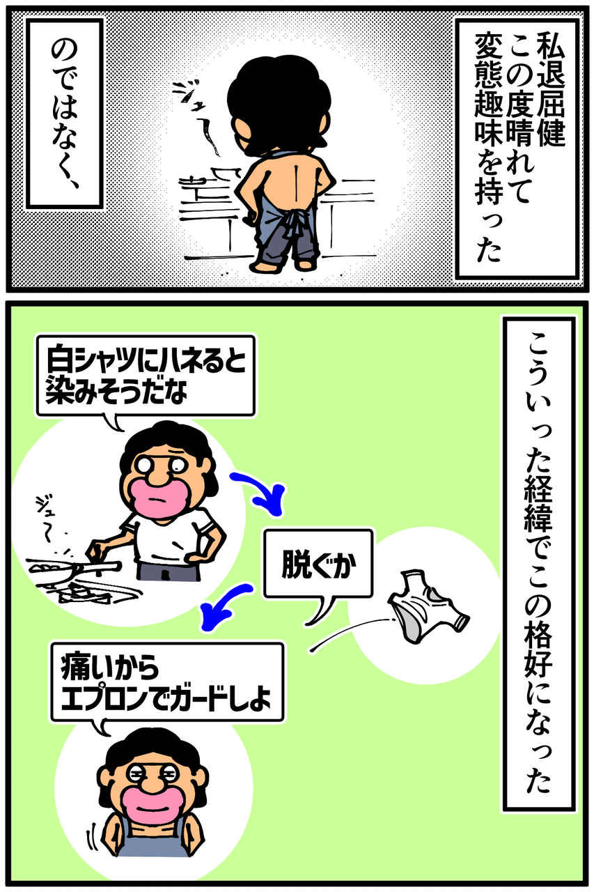 前は裸エプロンでゴミ出しにいくとかでしたっけ?