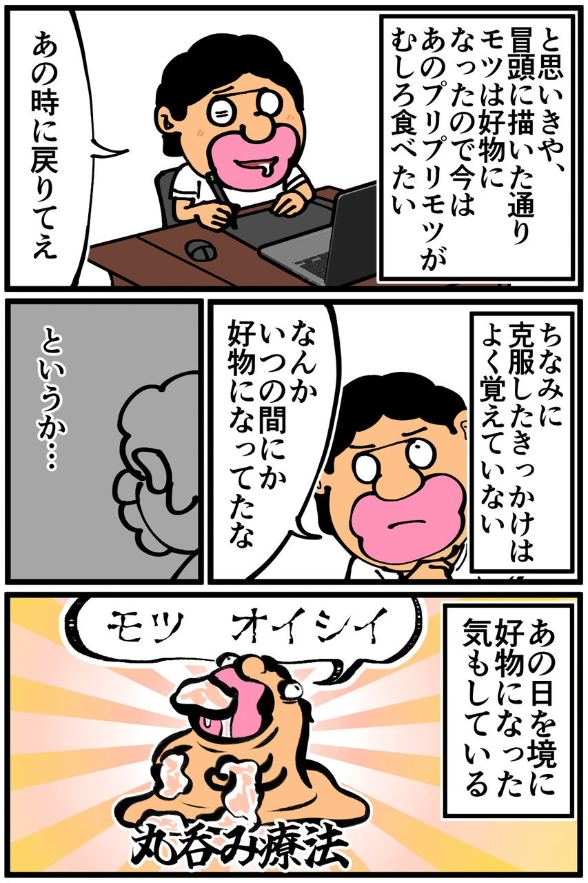 今となっては「モツはその食感が美味しいんだろ」と当時の自分を叱責したい気持ちです。