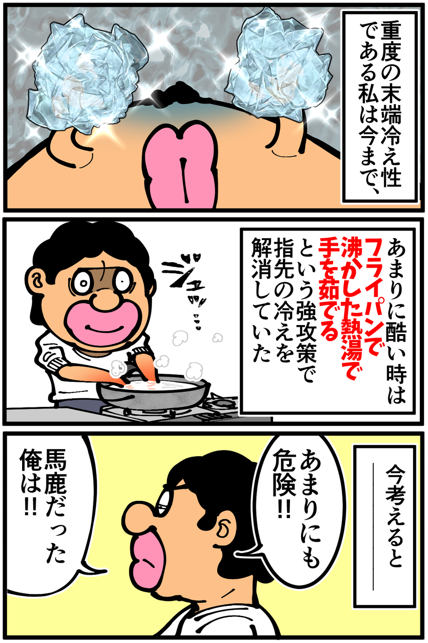 私も末端冷え性なので、手をフライパンで茹でたい気持ちはよくわかります(気持ちだけ)
