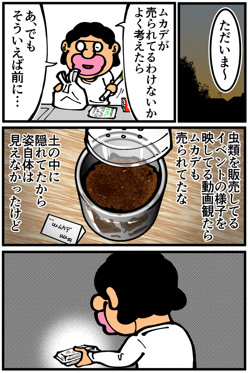 動画ではこんな感じで売られてたからやっぱりムカデだったんじゃないかと一瞬ヒヤヒヤしてしまった。むかごで合ってました。