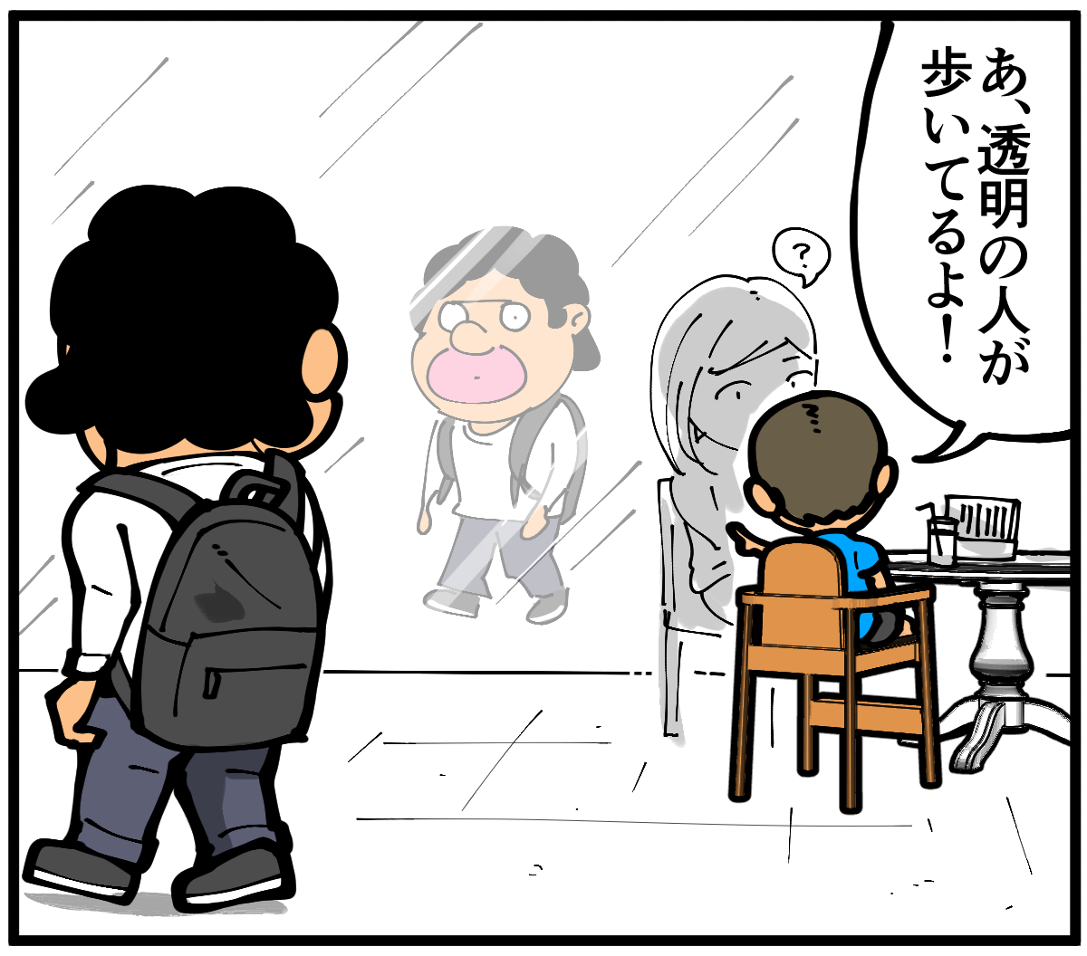 でも半透明の人間が歩いていると認識するその感受性がとても素敵。小さい子の発想力は面白いですね。