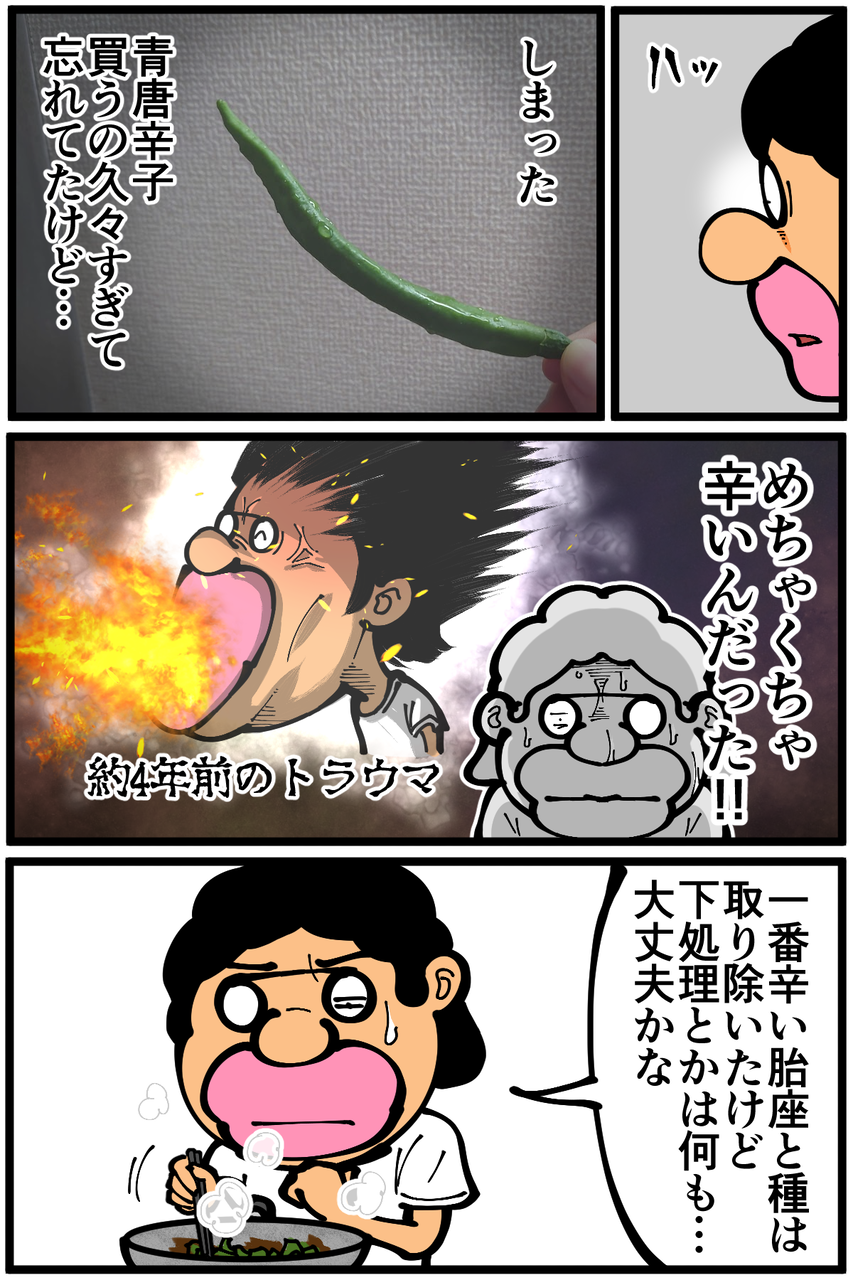 シシトウでもたまにメッチャ辛い奴いるから怖い気もします💦