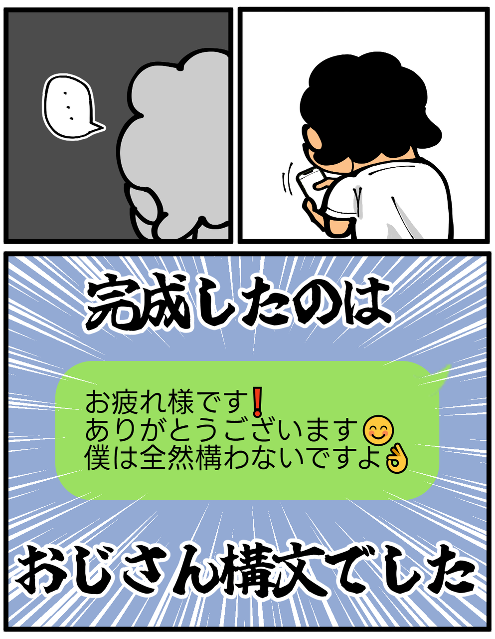 これじゃ冷たい?って色々考えた挙げ句完成するのはいつもおじさん構文