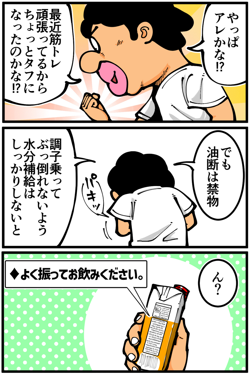 いちいち確認するのも面倒なんで、自分は炭酸以外はとりあえず振っときます