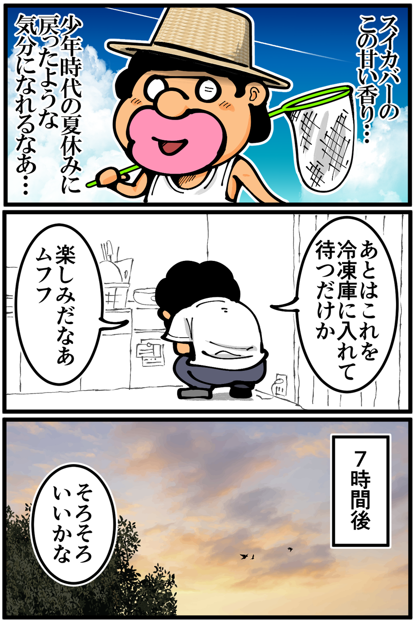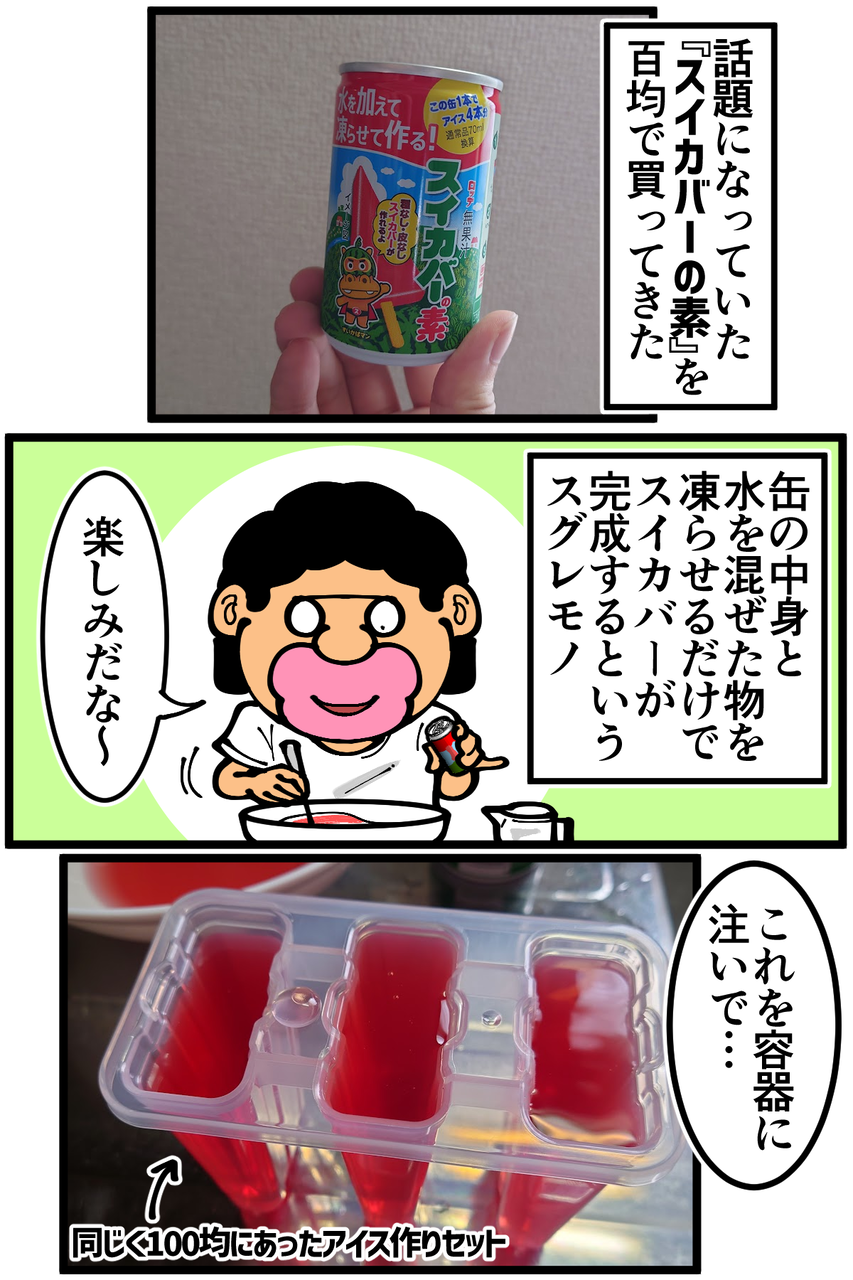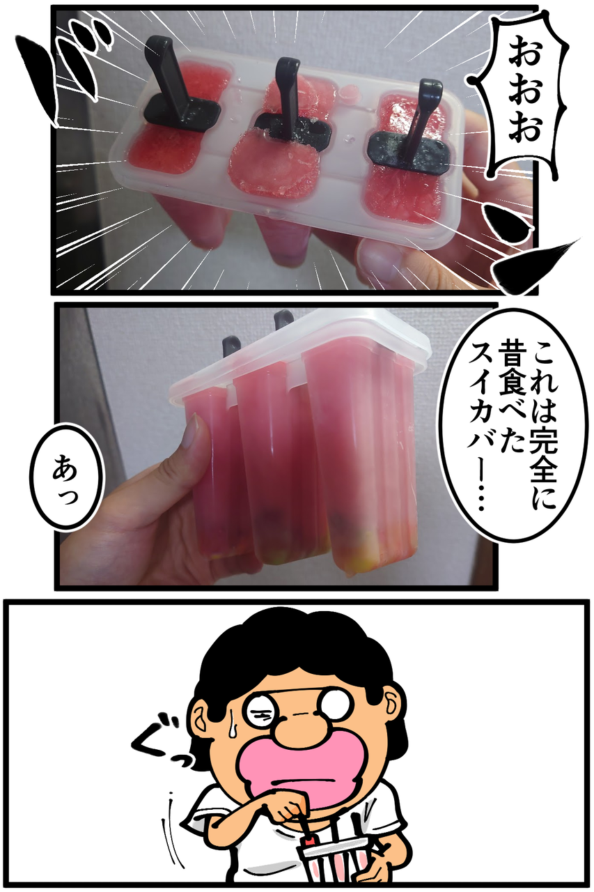 底に沈むのは当たり前だろといった話ではあるんですが、本家スイカバーの種が大好きだったのでどうしても挑戦してみたくなって入れたらやっぱり酷い見た目になりました。