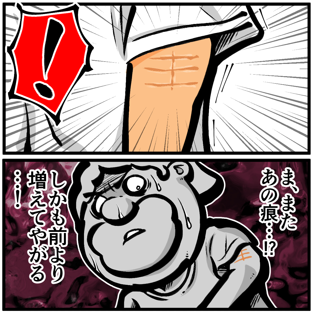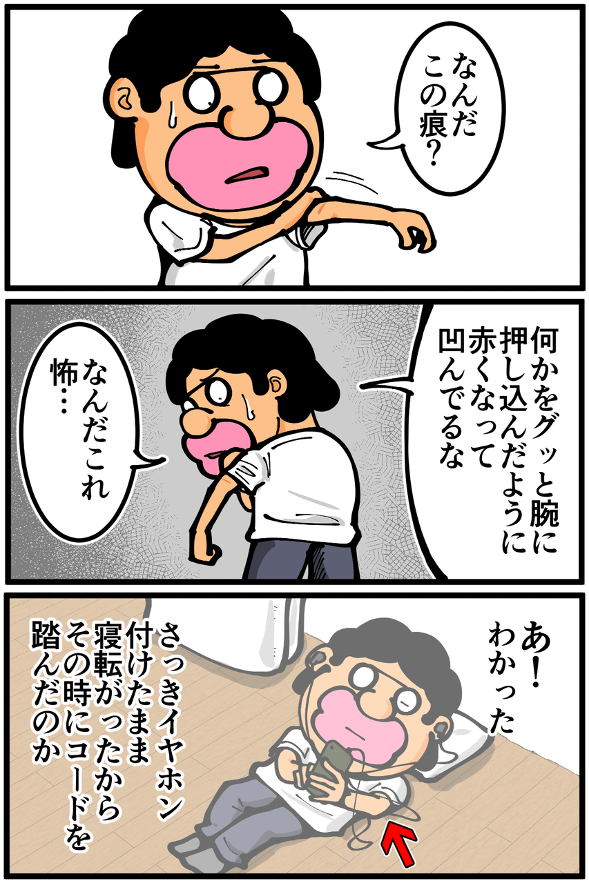 第1767話「腕にあった謎の痕・前編」 2024年10月02日 後編に続きます。続き↓ 1000円旅シリーズのKindleインディーズマンガ出版しました(無料で読めます!)●登録していただくとライブドアアプリから更新通知が届きます↓(ライブドアアプリについて)●X(旧Twitter)やってます↓●Instagramでブログの過去記事など更新してます↓ 「絵日記」カテゴリの最新記事 < 前の記事次の記事 > コメント コメント一覧 (7) 1. ぽちた 2024年10月02日 21:18 なんか昔のアンテナを思わせる模様ですね 先生、TVのアンテナの上で寝ましたか? 屋根の上で寝てると落ちますよ 0 taikutsu_ken がしました 2. ゆずきち 2024年10月02日 21:29 ガチ回答も珍回答も思いつかない我が想像力の無さよ… 0 taikutsu_ken がしました 3. 今日が一番若い! 2024年10月02日 21:42 線が増えてる?!床に寝そべっていた板の跡?増えてるのが嫌ですよね。 私もついさっき、腕に大きなシミが出来ていたのを発見して震えてます。病気じゃないなら何でも良いけど。 0 taikutsu_ken がしました 4. コードも畳も… 2024年10月02日 22:04 人間…歳を重ねると… アトが取れにくくなるんですよ…🙀 リモコン跡を頬に刻みし者 0 taikutsu_ken がしました 5. ゆきちお 2024年10月03日 03:40 私の寝起きの顔についた跡と同じかな⁉️ そのまま仕事に行っちゃう😁 0 taikutsu_ken がしました 6. 二本足 2024年10月03日 11:24 腕のシックスパックは新しいですね 0 taikutsu_ken がしました 7. 井上 2024年10月06日 19:27 お隣に気を遣ってイヤホン使ってるのかな?一人暮らしでしたっけ? 0 taikutsu_ken がしました コメントフォーム 名前 コメント 記事の評価 リセット リセット 顔 星 情報を記憶 コメントを投稿する