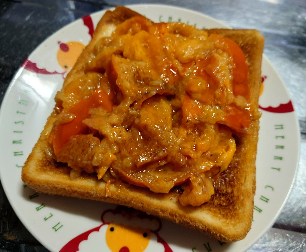 調子に乗ってバターで炒めて柿バタートーストを作ったりもしました。盛り付けのセンスが終わってるけど美味しかった~