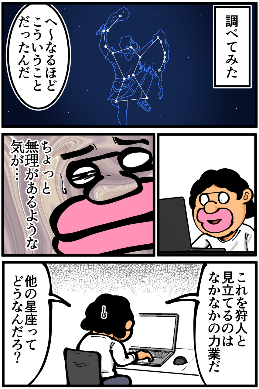 昔々あるところにいた人々が、特に強い光の星々を結んで星座を想像したと思うとなんか時間の使い方が素敵だなと思います