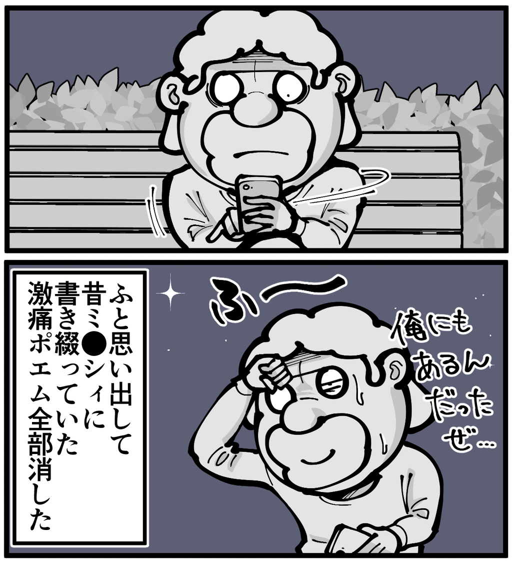 先生のキモポエムには遠く及びませんが中学時代の卒業文集なんか掘り出してみるとのたうちまわりたくなりますね