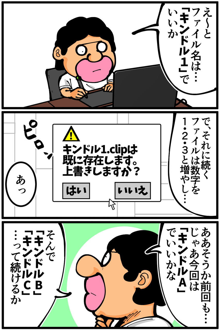 私の場合は、タイトルの前に『001』で数字でファイル名とかつけてますね。