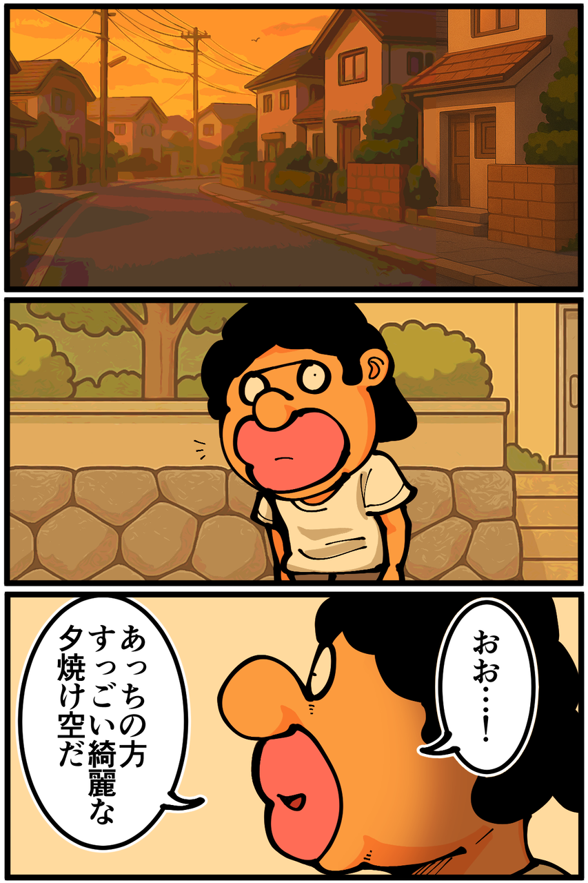 第1859話「夕焼け空の写真の色彩を調整した結果」 2025年10月15日 色彩センスゼロ。好き放題いじってたら上空で火炎放射器をぶっ放したような画像になってました。色味を強めにすればいいってもんじゃないんですね。次の記事↓ このセンスで秋の青空を撮るとこうなる↓ 新しいKindleインディーズマンガを出版しました!(全編無料でご覧いただけます)●登録していただくとライブドアアプリから更新通知が届きます↓(ライブドアアプリについて)●X(旧Twitter)やってます↓●Instagramでブログの過去記事など更新してます↓ 「絵日記」カテゴリの最新記事 < 前の記事次の記事 > コメント コメント一覧 (3) 1. ゆきちお 2025年10月15日 03:45 す、すごい火の川みたい🔥 0 taikutsu_ken がしました 2. みきみき 2025年10月15日 06:46 ちょっと見てみたいと思ったら、コレ写真? 0 taikutsu_ken がしました 3. ゆずきち 2025年10月15日 09:06 単色の画像よりは…(笑) 0 taikutsu_ken がしました コメントフォーム 名前 コメント 記事の評価 リセット リセット 顔 星 情報を記憶 コメントを投稿する