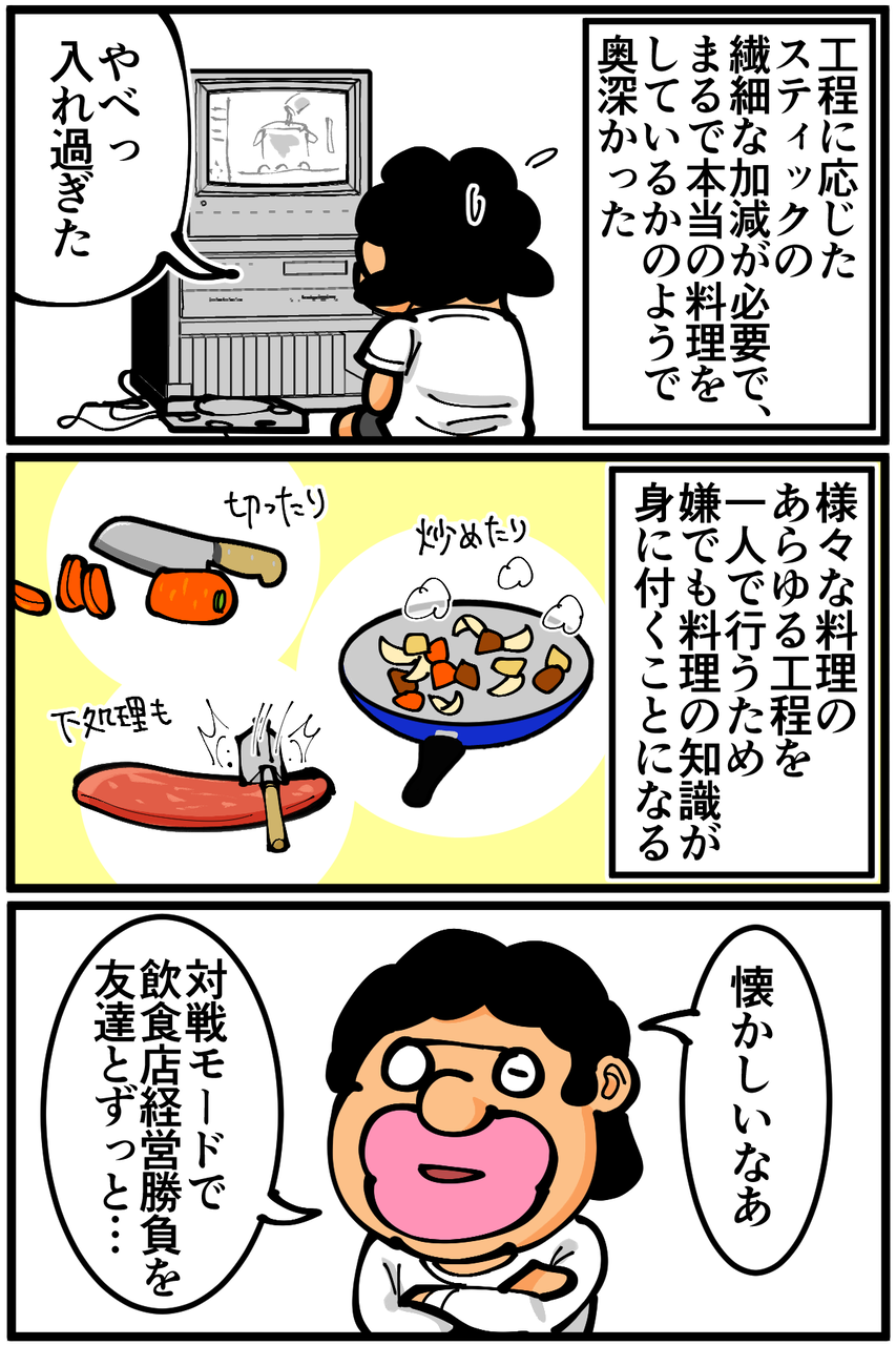 第1862話「本格料理ゲームの思い出」 2025年11月01日 数秒茹でて味付けもほぼしない鬼のバリカタお湯ラーメンとか提供してたなあ…次の記事↓ ゲーム関連の記事一覧↓新しいKindleインディーズマンガを出版しました!(全編無料でご覧いただけます)●登録していただくとライブドアアプリから更新通知が届きます↓(ライブドアアプリについて)●X(旧Twitter)やってます↓●Instagramでブログの過去記事など更新してます↓ 「絵日記」カテゴリの最新記事 < 前の記事次の記事 > コメント コメント一覧 (2) 1. ゆきちお 2025年11月02日 06:42 そ、そんな対戦ゲームだったんだ😭💦 昔、ぷよぷよのカレーストーリーでエビをゲットしたのに出来上がったカレーはカニカレーだったのを思い出しました😵 0 taikutsu_ken がしました 2. あゆ 2025年11月02日 20:21 俺の料理なつかしすぎて! ラーメン屋が一番好きで、グルメが来た時だけ丁寧に生ビール注いでたのを思い出しました 0 taikutsu_ken がしました コメントフォーム 名前 コメント 記事の評価 リセット リセット 顔 星 情報を記憶 コメントを投稿する