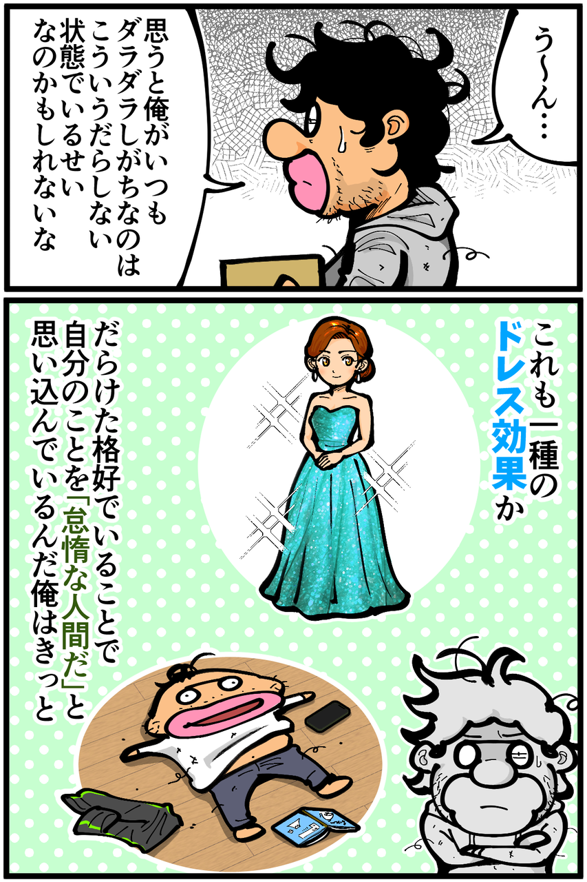 ちなみに今思い出しましたが、かなり昔、家で会社の仕事をするときは必ずスーツに着替えないとやる気や集中力がわかないとブログを書いてる同年代の知人男性が居ました。